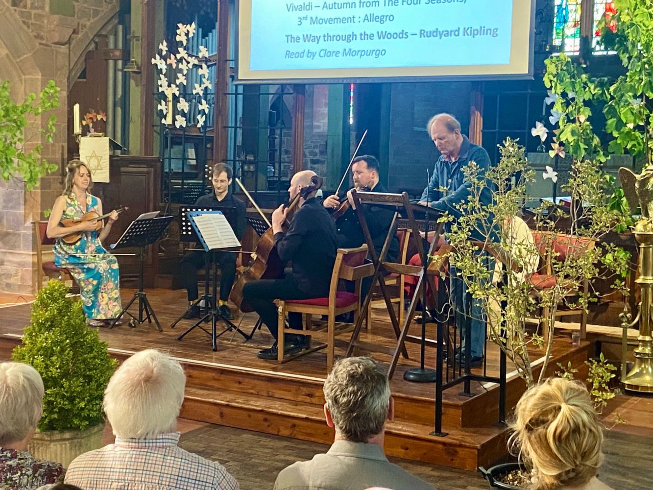 My Heart was a Tree Concert. Michael and Clare Morpurgo, Carol Hughes, and the Iddesleigh String Quartet.